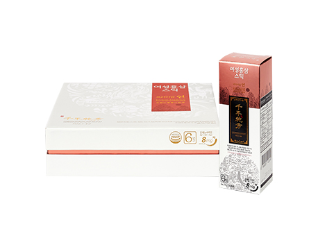 원재료명 및 함량 흑삼분말액 진[고형분 8.9%, 정제수, 흑삼분말, 국산]79.4%, 홍삼농축액(고형분 60%이상, 홍삼성분 70mg/g 이상, 진세노사이드 Rg1+Rb1+Rg3의 합 23mg/g이상, 국산)16%, 석류농축액(65brix), 녹용추출액, 수용성아쿠아민(칼슘12%), 아사이 혼합 베리농축액(65brix), 유기농 아로니아농축액(65brix), 유기농 콩코드포도농축액(68brix), 17종 유기농 과일야채 혼합분말